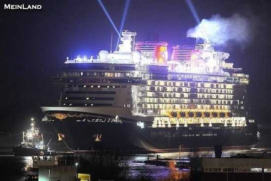 Как сообщает Focus, свой первый короткий маршрут из дока к пирсу, в ночь на воскресенье, проделал самый крупный круизный лайнер Германии . Это самое большое судно, которое было построено в Германии класса люкс. В субботу вечером лайнер под именем Disney Dream, был выпущен из 500-метровой в длину и 75 метровой в высоту верфи, располагающейся в городе Папенбург (Нижняя Саксония).Предполагается, что будущем он будет пересекать Карибский бассейн.