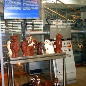Фото: Кельнский музей шоколада По правде говоря, он не единственный в мире, у него ещё 45 «собратьев» на разных континентах, но Кёльнский музей шоколада по праву входит в «десятку» лучших музеев Германии. Ежегодно его посещают шестьсот пятьдесят тысяч туристов. Тут и правда есть на что посмотреть, само здание выстроено из кирпича и стекла в форме корабля. Общая площадь этого сладкого музея на Рейне почти две тысячи квадратных метров! Надо сказать, что его главное отличие от подобных музеев в том, что он построен отдельно от шоколадной фабрики и является собранием редких экспонатов, связанных с шоколадоварением, а не частью кондитерского производства. Фактически его экспозиции рассказывают мировую историю шоколада со времён ацтеков, которой уже три тысячи лет. Фото: Кельнский музей шоколада Откуда берётся шоколад? Уж если следовать совету классика: «Зри в корень»,- надо отправиться в тропики и отыскать какао-деревья. Хотя, в нашем случае это необязательно, в музее есть теплица, которая вмещает шестьдесят видов тропических деревьев и кустарников. Здесь тридцатиградусная жара и стопроцентная влажность, каждый час с десятиметровой высоты «идёт» почти тропический дождь. Микроклимат сохраняется благодаря специальным дверям-шлюзам.Самые «действующие» экспонаты – это шоколадная мини-фабрика и линия по производству трюфелей. Каждый день в музее производится четыреста килограммов сладкой продукции. Фото: Кельнский музей шоколада Нет такого вопроса о шоколаде, на который в Кёльнском музее не нашлось бы ответа. Весь процесс от сбора урожая какао до упаковки, а также история известных мировых брендов (Rittersport, Lindt, Nutella, Mars, Milka, Kindersurprise, Mozartkugel) освещены в экспозициях музея. Фото: Кельнский музей шоколада Почти в самом конце экскурсии посетителей поджидает … настоящий