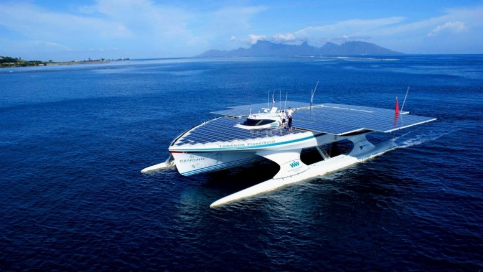 60000 км по морю для кораблей, а также для роскошных яхт это огромное расстояние. А если еще удастся проплыть его, не затратив ни капли топлива, то это просто рекорд! И MS Tûranor PlanetSolar смог это сделать! 31 метр в длину и 15 метров в ширину, MS Tûranor PlanetSolar стоимостью в 12,5 миллионов евро является самой большой яхтой в мире, использующая солнечную энергию. Это первый в истории корабль, который смог совершить кругосветное путешествие, принимая только дары солнца. Яхта была построена на немецком заводе Knierim Yachtbau и оснащена фотоэлектрической-солярной станцией, которая состоит из 38000 ячеек. Они занимают площадь около 537 квадратных метров и суммарно вырабатывают до 120 кВт мощности. Электроэнергия накапливается в 6 огромных литий-ионных аккумуляторах, которые приводят в движение 4 электромотора. Яхта оснащается не обычными металлическими винтами, а парой лопастей из углепластика размером 1,8 метра. Крейсерская скорость составляет 14 узлов в час (примерно 26км/ч), это, конечно, не так много в отличии от других судов, но по сравнению с ними не требуется топлива для вращения винтов. Корпус яхты MS Tûranor PlanetSolar сделан из пенопласта, покрытого углепластиком или так называемым карбоном. Эта очень легкая конструкция способна выдерживать высокие нагрузки. Материалы специально были разработаны для уменьшения веса яхты, который играет важную роль в экономии энергии. В 585-дневном путешествии приняли участие 6 человек, оно началось 27 сентября 2010 года в Монако и длилось 19 месяцев. В минувшую пятницу, 4 мая 2012 года, экипаж закончил плавание, прибыв в тот же порт. Теперь эта «гордая» яхта будет переделана в корабль вместимостью 40 человек. |
