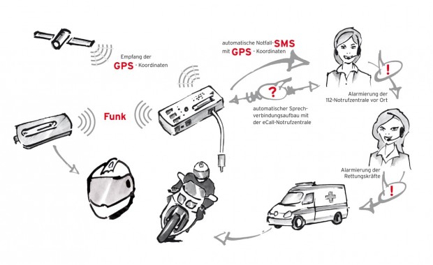 Мотоциклы по-прежнему остаются одним из самых опасных видов транспорта. Согласно статистике в 2011 году на дорогах Германии в авариях с участием мотоциклистов погибло 700 человек. С этими смертями невозможно смириться, ведь транспортными средствами управляли молодые, полные жизни и планов на будущее люди. Если бы пострадавшие получали первую помощь как можно раньше, наверняка, число погибших было бы меньше. Идею трёх школьников из города Гессен о мгновенном сообщении об аварии поддержал Фонд Björn-Steiger-Stiftung с участием компаний Telekom, Bosch и Schuberth, которая производит мотоциклетные шлемы. Новая система оповещения работает следующим образом: в шлеме и в самом мотоцикле устанавливаются датчики, срабатывающие при ударах, толчках, резком наклоне мотоцикла и, даже, при максимальном ускорении; далее через eCall-System (систему электронных звонков), связанную с GPS –навигатором, сигнал тревоги автоматически поступает на центральный пульт Фонда. Чтобы избежать недоразумений (в конце концов, шлем может просто упасть), сотрудники Фонда звонят адресату, и, если он не отвечает, сигнал тревоги с указанием координат транспортного средства немедленно перенаправляется в Службу спасения. Это нововведение будет особо полезным для любителей быстрой езды по незагруженным, малопосещаемым дорогам, вдали от крупных населённых пунктов. |