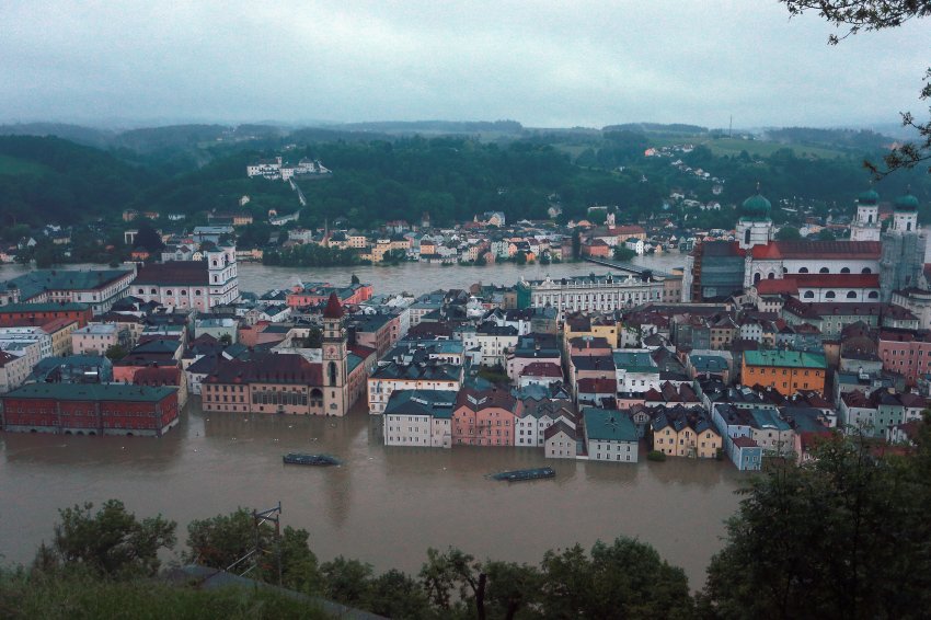 Утром В Пассау ожидаются пиковые уровни для Инн в 9,50 метров и Дуная до двенадцати метров. "Днем на Дунае мы ожидаем исторический максимум в 12,55 метров", заявил пресс-секретарь кризисной команды Пассау. Исторический центр и другие части города уже затоплены, и из-за соображений безопасности в некоторых домах был отключен свет. В понедельник утром, около 150 немецких солдат помогут с наводнением в Пассау. В пятницу, по некоторым данным было около 15000 помощников. Виной всему является область низкого давления над центральной европой, которая постоянно притягивает теплые и влажные воздушные массы и вызывает обильные проливные дожди. |