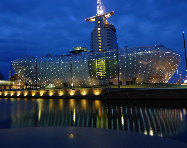 Современный комплекс климата, который разработан и построен с учетом новейших технических и климатических разработок современности, был построен в уютном Бремерхафене - поражает жителей Германии и посетителей со всего мира своей красотой и уникальностью. Этот дом был разработан для популяризации экологических и климатических проблем современного мира. Создатели «дома климата» акцентируют свое внимание на сегодняшнем восприятии научно-социального мира в целом и охране окружающей среды наиболее развитыми странами, лидерами производства вредных для окружающей среды веществ. Строительство данного дома обошлось в 70 млн. евро налогоплательщиков Германии, без учета дополнительно собранных средств в виде пожертвований и благотворительных вкладов. Огромные площади дома, которые составляют 11500 квадратных метров, были равноценно распределены для четырех основных выставочных залов, в которых демонстрируются наиболее актуальные и современные технологические решения для борьбы с вредными выбросами химических заводов, автомобильных концернов, металлургических комбинатов, сельскохозяйственных перерабатывающих предприятий и других промышленных объектов обеспечивающих комфортную и безопасную человеческую жизнедеятельность. Проект был начат ещё в 2004 году, однако сложности с финансированием, поиск наиболее концептуальных решений и бюрократическая волокита достаточно сильно тормозили процесс. Лишь 26 июня 2009 года проект был полностью закончен. Опасения, что «дом климата» так и не начнет привносить свой вклад в борьбу за чистоту и стабильность климата не оправдались, объект был торжественно открыт известным ирландским музыкантом Бобом Гелдофом, который так же известен, как яростный сторонник экологической безопасности и стабильности всего мира. Особое внимание заслуживает уникальная геометрия здания, напоминающая сказочную реальность, в которой законы математики и оптической видимости отсутствуют и лишь прекрасное имеет место быть. Затрагивая внутреннюю архитектуру дома климата, можно отметить, что она не поддается классическому восприятию, которое в обязательном порядке должно включать такие элементы как: потолок, стена, пол. Эти элементы заместил некий континуум внутреннего пространства состоящий из плавно переходящих уровней, а галереи имеют свою особенную геометрию, не сравнимую с чем-либо. |