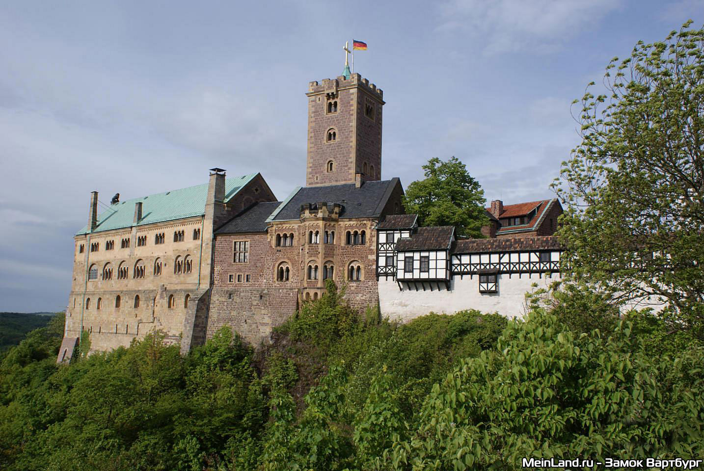 Замок Вартбург в Тюрингском лесу, возвышающийся над городом Айзенах, патетически и поэтически сотни и тысячи раз увековеченный в изображениях и словах. Застывшая в камне метафора рыцарских достоинств и миннезанга, крови крестоносцев и духа реформаторства. Ему неоднократно посвящал свои строки Гете, а Рихард Вагнер сделал его местом действия своей оперы "Тангейзер". Но между временами Гете и Вагнера произошло обновление замка. В середине 19 столетия Великий герцог Саксен-Веймар-Айзенахский и архитектор Хуго фон Ритген решили возродить из руин "самый немецкий из всех замков". Вскоре после того, как 500 членов немецкой студенческой корпорации, искавших в руинах Средневековья новое немецкое самосознание и историческое понимание, провозгласили здесь единство Германии. В руинах и под толстым слоем штукатурки они обнаружили величественное средневековое сооружение, искусные колонны, аркадные коридоры и, как выяснилось позже, цель своей жизни. 40 лет реставрационных работ, которые прерывались нехваткой денег, политическими смутами и выступлениями, с целью "возведения Вартбурга, как символа познания самой прекрасной немецкой эпохи". В ожидании восторга, "более сладкого, чем все выигранные битвы". Количество посетителей, миллионные толпы, представляются, вероятно, живым подтверждением такого энтузиазма. Сюда приезжают в наше время и немцы, и туристы из всех уголков мира. По следам миннезингеров, католической святой Елизаветы или, чтобы почтить беглого реформатора Мартина Лютера. Вартбург – это место, где творилась немецкая история, а каждая связанная с этим замком личность, становилась героем саг и легенд, с их деяниями и чудесами… "Вартбург стал для Германии прекрасной сказкой, это – история, это – литература, герои и поэты". Это – воплощение духа Средневековья с идеалами романтики. Это – Вартбург в немецком Айзенахе. |