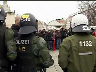 Вторую ночь подряд в саксонском городе Хайденау полиция силой разгоняет