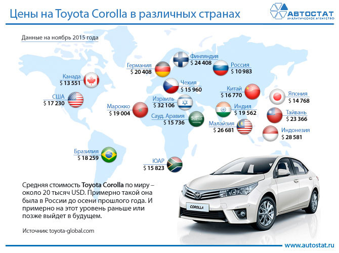 Corolla, который продаётся почти во всех странах мира. В России цена